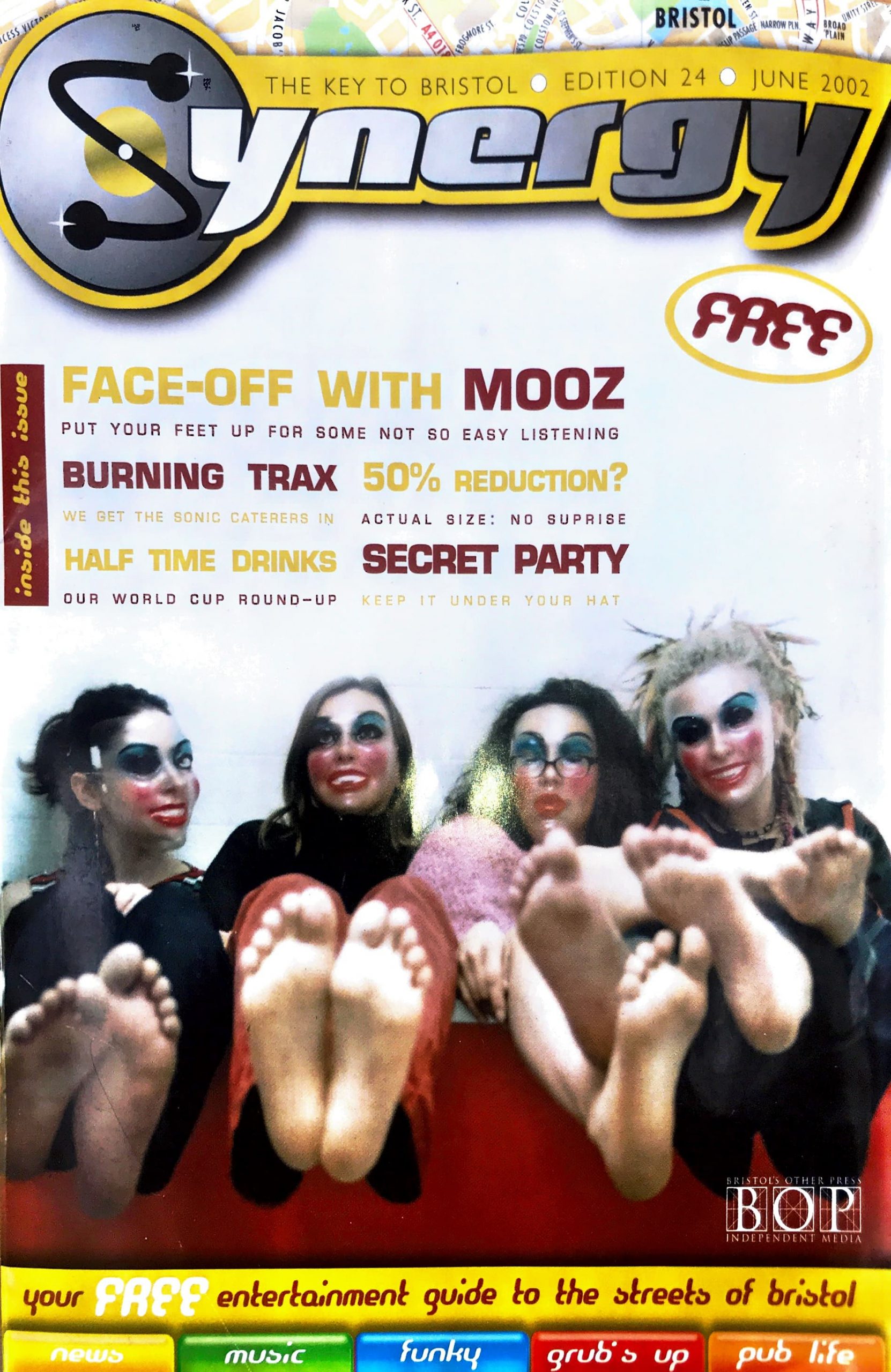 “Mooz’s maniacal fixed grins turn out to be clear plastic masks, making their eerie funk sound all the more spooked. Singer Jess has a haunting howl which she uses to unnerving effect over Paula’s minimal guitar chops, Rasha’s slinky bass and Amy’s machine-gun breakbeats. Think The Slits jamming with Gil Scott Heron and then stop, because what Mooz deserve is a record deal, not rubbish analogies.” – Venue review, Sink and Stove’s second birthday party, Thekla, 17th Jan 2002